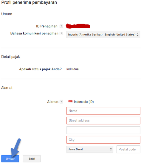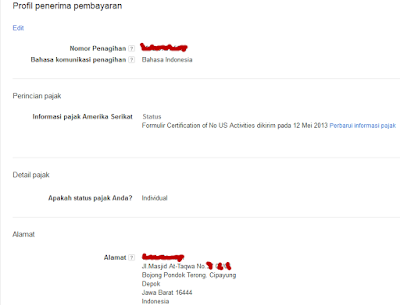 Pastikan Biodata yang ada di akun Adsense anda sudah sesuai dengan kartu identitas anda, misalnya KTP, SIM, atau Passport. untuk konfigurasi ini anda bisa masuk ke akun adsense anda dan konfogurasikan akun anda dengan cara klik roda gigi di samping kanan atas dan klik pada sub menu Pembayaran.
