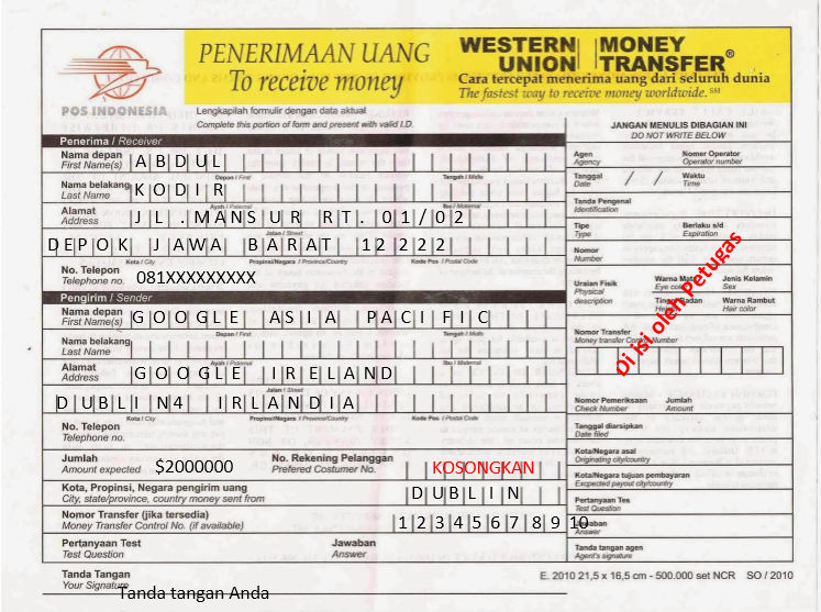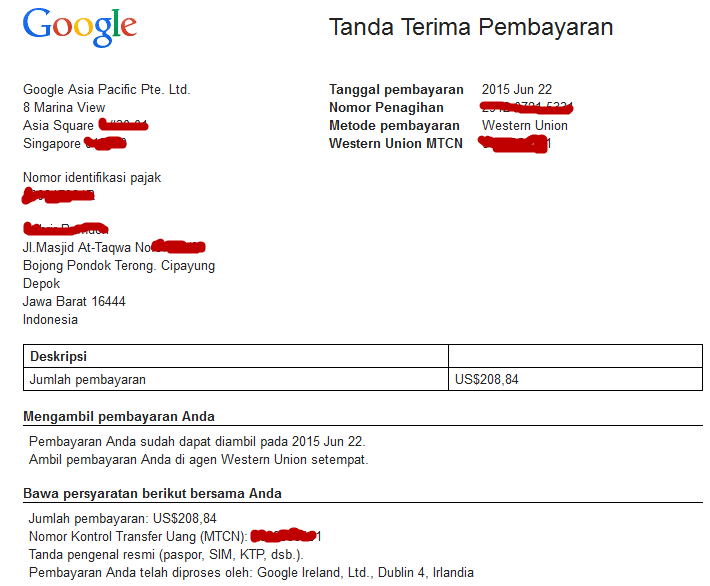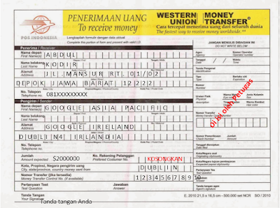 Nah ! itulah langkah-langkah untuk mencairkan Uang di Western Union untuk konten Adsense.